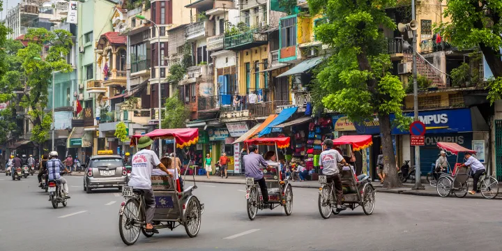 A treasure trove of tasty delights awaken the senses in the Vietnamese capital. Hanoi is famous for its delicious street food, serving up an array of dishes from all corners across the city. Steaming bowls of pho, a Vietnamese rice noodle soup, are served alongside marinated meats grilled to perfection. The café scene in Vietnam is equally as popular; egg coffee is a local specialty and a decadent cap to any meal. After breakfast, check out of your hotel. This afternoon, fly to your destination city and check into your hotel.