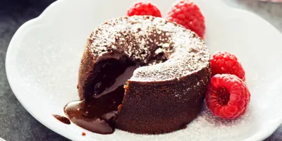 This rich dessert combines a soufflé with the decadence of molten chocolate. It is every chocolate lover’s ultimate dream, with crusty cake edges and a gooey, soft center. The cake batter can be frozen for up to a month before baking (do not thaw before baking). Offset the richness by garnishing with crème fraîche and fresh raspberries.
