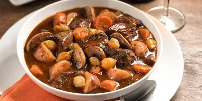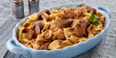 This hearty main dish originally came from 19th-century Russia and was named for the Stroganov family, whose palace can still be seen on Nevsky Prospekt in St. Petersburg. In the early versions of the recipe, mustard was included as an ingredient, but modern versions omit the mustard and instead depend on the rich texture of sour cream.
