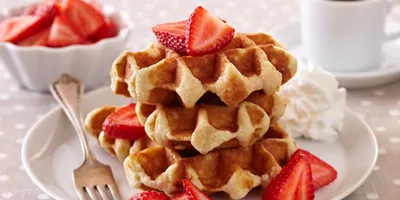 The Belgian waffle actually originated in North America, not Belgium. These are traditionally served with whipped cream and strawberries, but are also great with maple syrup and butter. Belgian waffle makers have deeper grids than a standard waffle maker, yielding a waffle that is bigger and fluffier with more space for whipped cream or syrup.