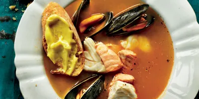 Originally cooked by fishermen using unwanted fish from their catch, this traditional Provençal fish stew is served with a creamy, saffron-scented rouille.
