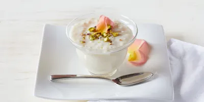 This oriz puding is easy to make and likely will become a favorite. The lemon zest adds a freshness to the pudding, and the rose-pistachio garnish is lovely. You can serve this while still warm, or at room temperature; just refrigerate any leftovers.