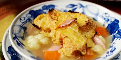 According to Czech lore, Česnečka(garlic soup) will cure just about anything, even the common cold. It certainly tastes rich and comforting. So, if you feel under the weather, make a big pot of this simple soup of broth, potatoes, garlic and cheese to help you feel better.
