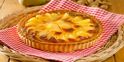 Frangipane, a sweet almond-flavored pastry cream, sets off this tart’s buttery pastry and slices of fresh pear. Like so much of French cooking, this dessert is both elegant and delicious. Indeed, while all aspects of French gastronomy are renowned, it is France’s wonderful pastries and baked goods that are typically the most beloved.