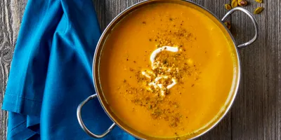 The nutty, spicy seasoning of this hearty soup combined with yogurt topping gives it a unique and irresistible flavor. Made with toasted and grinded nuts and seeds, peeled carrots and chicken stock, it is easy to prepare. This sweet, nourishing and filling soup and will help keep you warm when it gets chilly.