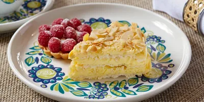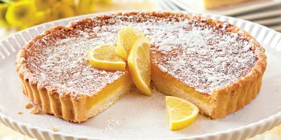 This refreshing open-faced tart is similar in flavor to a lemon meringue pie without the meringue. It is usually dusted with powdered sugar to offset the tartness of the lemon. You can also top it with a few fresh raspberries for an elegant look, and should you want even more lemony flavor, add some lemon zest into the filling.