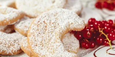 These traditional cookies complement a cup of good, strong coffee. Stories would have you believe their crescent shape celebrates the defeat of the Ottoman Empire in Vienna, 1683. Whatever the origin, you will find them featured in bakeries throughout Vienna. This particular recipe calls for almonds, but you can substitute walnuts, hazelnuts or pecans—all equally delicious!