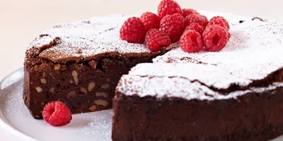 This dense moist cake is like a giant chocolate truffle—crunchy on top with a deliciously fudgy center. Extremely rich yet so simple to make, it is popular all year round. It is gluten-free and you can even make it in advance—just take it out of the refrigerator an hour before serving. It tastes even better the second day.