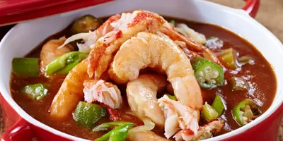 This seafood and andouille medley is quintessential Louisiana fare. Serve it as an appetizer with French bread, or with rice for an entrée. The oil-based roux is a traditional thickener. Offer additional hot sauce for those who like it spicy. Add filé at the table, as gumbo can become bitter if it is added during cooking.