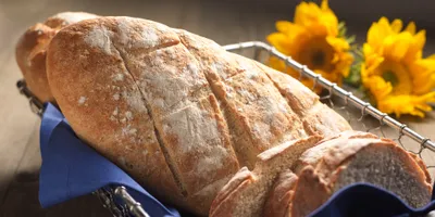 This French country bread is a rustic loaf, typically a large round loaf. The technique below involves making a sponge first, which contributes a depth of flavor to the bread. Misting the bread once in the oven is a great technique for home bakers to achieve that hard, crackly crust so typical of good French bread.