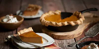 No Thanksgiving table would be complete without a delicious pumpkin pie, with its trademark velvety texture and autumnal spices. Our version is served with creamy pumpkin gelato for an extra helping of seasonal cheer. Individual tart molds ensure that everyone can enjoy a taste of this holiday staple.
