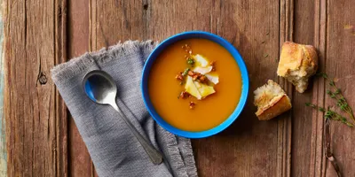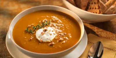 Since the first pumpkin seeds were brought to the Old World from the Americas, Europe has embraced squash-based cuisine. This easy recipe yields a full-bodied soup without using cream. The final flourish of candied walnuts, thyme and parmesan adds texture and complements the flavors exquisitely, and makes for a delightful seasonal fall starter or winter main course.