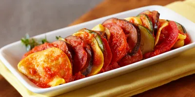 This classic Provençal stewed vegetable dish is multitalented—able to act as a flavorful base for grilled meats, an excellent side dish for poultry, or a main course for vegetarians. It also is versatile enough to be served hot, room temperature or cold, and even makes a lovely sandwich filling that can be augmented with cheese for a substantial lunch.