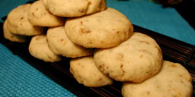 If you love ginger, you will enjoy these rich shortbread cookies with both fresh and crystallized ginger. Chopped glazed walnuts add extra crunch, but regular walnuts can be substituted. Be sure to use a good-quality butter, as the flavor of it will come through. These are delicious with tea of any kind.