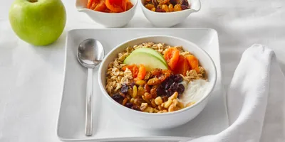 Muesli, a common European breakfast, differs from granola in that it is made with raw—not toasted or cooked—grains. Oats are the base, and other grains, nuts and dried fruit are added. This recipe is great for experimenting; substitute buttermilk for the yogurt, almonds for walnuts, cranberries or dried apricots for raisins, or make other modifications to suit your taste.